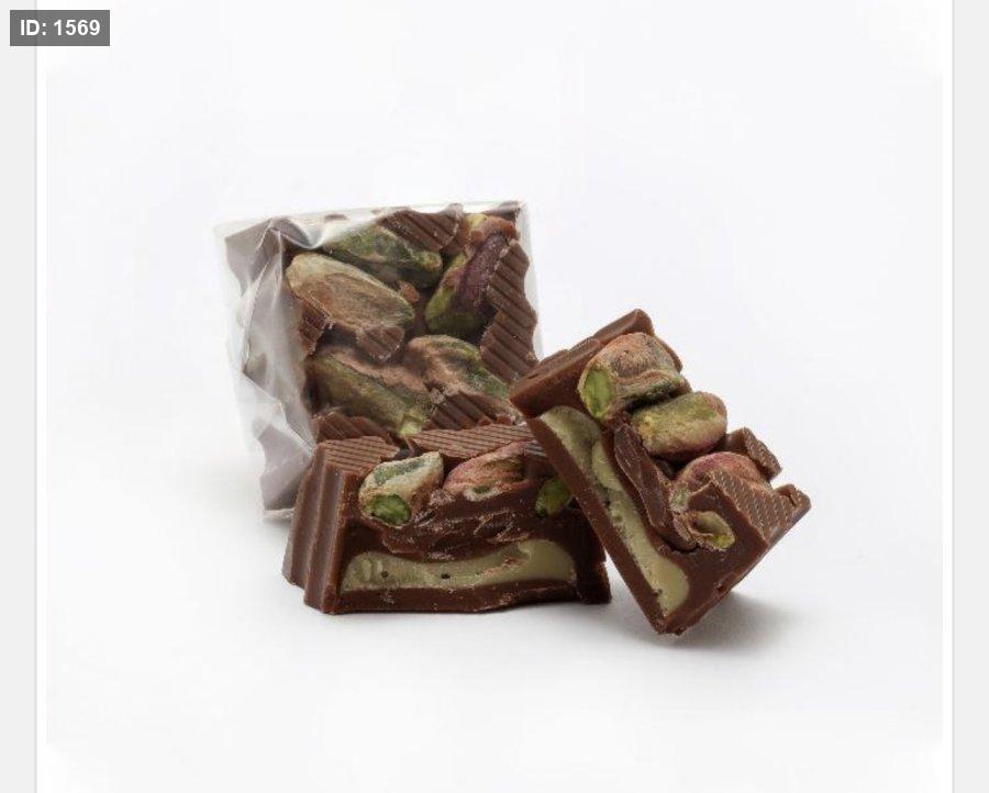 شوكولاته جورميت مربع بحشوه بستاشيو مع فستق حلبي عالوجه
